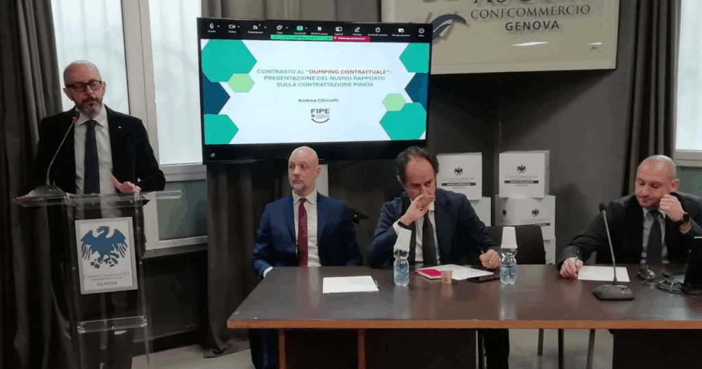 Si è tenuto questa mattina presso Confcommercio Genova il convegno dedicato al tema del dumping contrattuale nei pubblici esercizi, con la partecipazione di Paolo Gotta (Ordine dei Consulenti del Lavoro), Nicola Poli (Filcams CGIL), Silvia Avanzino (Fisascat CISL) e Marco Callegari (Uiltucs UIL).